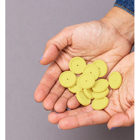 Muda as cores dos discos e do elástico do teu Caderno Inteligente sempre que quiseres. O nosso kit contém: 12 unidades de discos e 01 elástico.