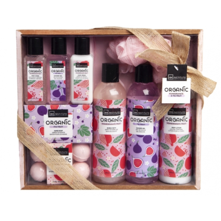 A caixa de presente contém sabonete de banho 270ml, creme corporal 270ml, creme para as mãos 60ml, espuma de banho 270ml, esfoliante corporal 60ml, gel de banho 60ml, sabonete 100g e bombas de banho 6x15.