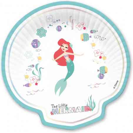 4 Pratos de Concha Ariel Atlantika ajudam a transformar a sua festa num mundo subaquático de sonho. Os pratos de papel têm 23 cm de diâmetro em o formato de uma concha.