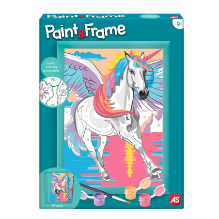Paint & Frame Paint by Numbers Magic Unicorn. Com os kits Paint & Frame, baseados na técnica de colorir por números, as crianças aprendem a colorir as diferentes imagens com cuidado e atenção, melhorando assim o seu talento artístico e desenvolvendo a motricidade. Ao final, sentirão uma sensação de alegria, orgulho e satisfação que os estimulará a querer continuar pintando. Satisfação e alegria! Transforme-se em artistas e tenha orgulho de sua obra-prima. Paint & Frame torna todos verdadeiros artistas! Quadros coloridos com molduras incluídas são perfeitos para quartos infantis Inclui: 11 cores acrílicas prontas 1 paleta 1 cartão pré-impresso 1 pincel 1 moldura 1 manual