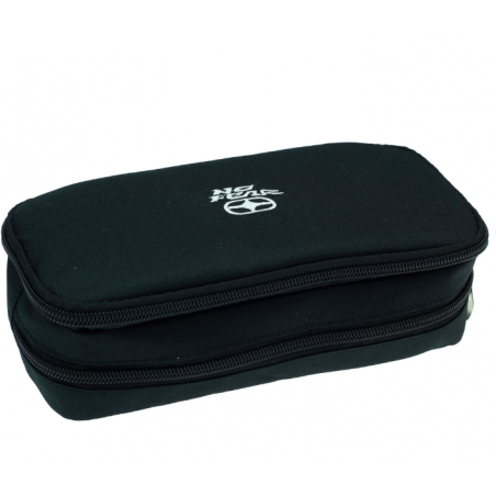Estojo preto em formato de barril da No Fear. Possui 2 compartimentos, 1 central e 1 bolso organizador frontal, ambos forrados e com fechamento em zíper. Estojo bonito e prático, ideal para acompanhar a criança à escola todos os dias.