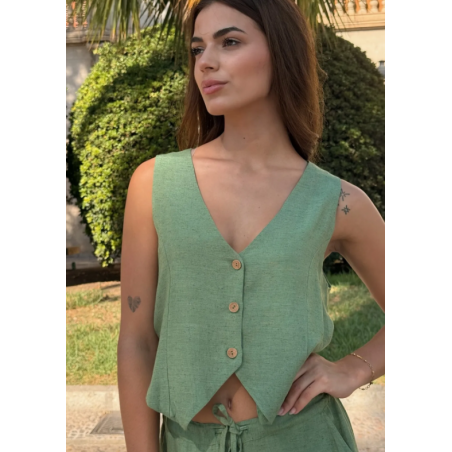 O colete Denise bege foi estrategicamente integrado às coleções de moda feminina por atacado para esta temporada primavera/verão . Uma peça-chave que está em sintonia com a demanda atual por roupas que combinam frescor e sofisticação.