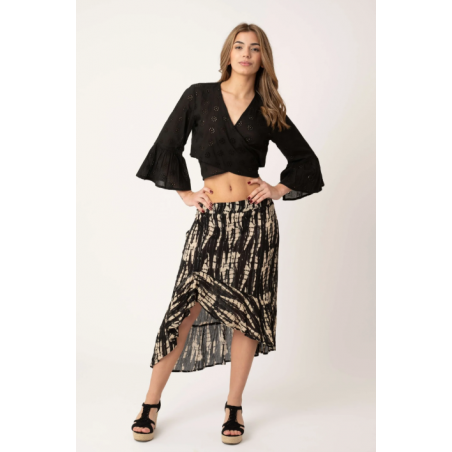 A saia midi Malena em lurex preto redefine a elegância com sua silhueta fluida e comprimento midi, uma peça essencial para a coleção primavera/verão . Confeccionada em crepe de viscose e um delicado fio de lurex, seu caimento excepcionalmente leve cria um movimento fluido que evoca a graça de um vestido esvoaçante . Este tecido não só oferece um caimento fluido, como também proporciona um caimento impecável.