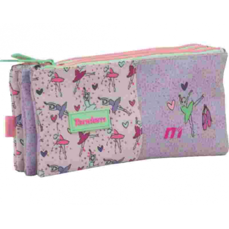 Estojo com três compartimentos separados e abertura superior com zíper. Ideal para manter o material escolar organizado e separado por uso. Seu tamanho facilita o transporte em mochilas e bolsas.