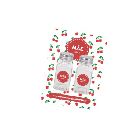 1Conjunto Saleiro e pimenteiro de vidro em blister Personalizado.